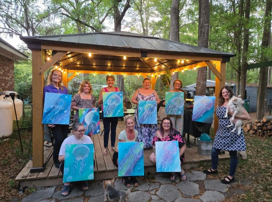 I come to you at your home, business or rented space (Savannah, GA and surrounding areas) and you receive private, step by step painting instruction! 2-3 hours for $35 per person. Includes: 16”x20” stretched canvas, palette, use of paint, brushes and tabletop easels!